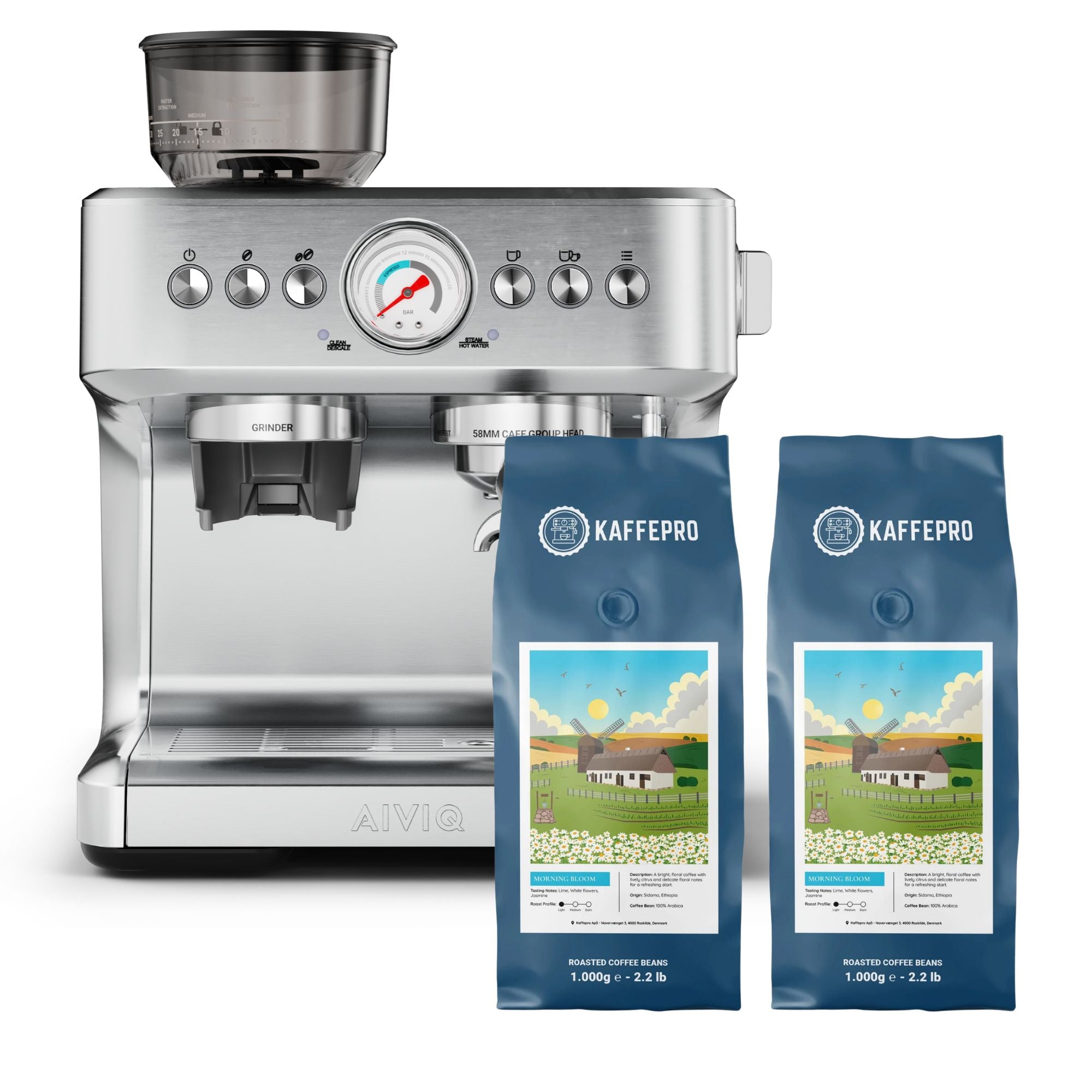 - Kaffe: 2 kg Kaffepro Morning Bloom (hela bönor)
