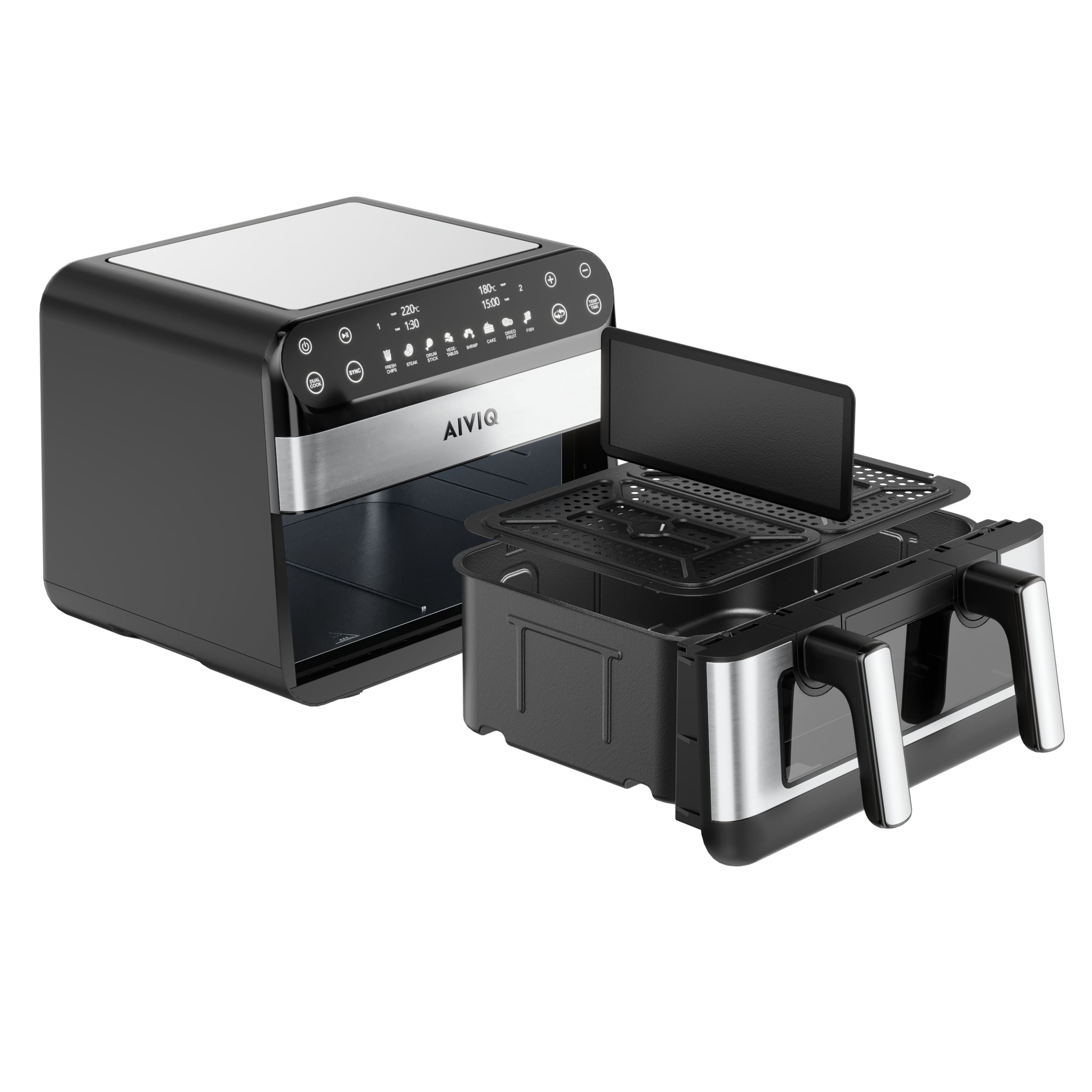 AIVIQ Premio AAF-D561 representerar det senaste inom smart köksteknologi, en dubbel airfryer designad för den moderna livsstilen. Denna avancerade airfryer erbjuder en imponerande kapacitet på 10 liter i en enda låda, som kan anpassas med en insats för att skapa två individuella tillagningsområden. Med möjligheten att ställa in olika tid och temperatur på varje område, kan du enkelt tillaga två olika rätter samtidigt utan att kompromissa med kvaliteten. Oavsett om du förbereder en stor familjemiddag eller olika snacks, säkerställer AIVIQ Premio AAF-D561 perfekta resultat varje gång.