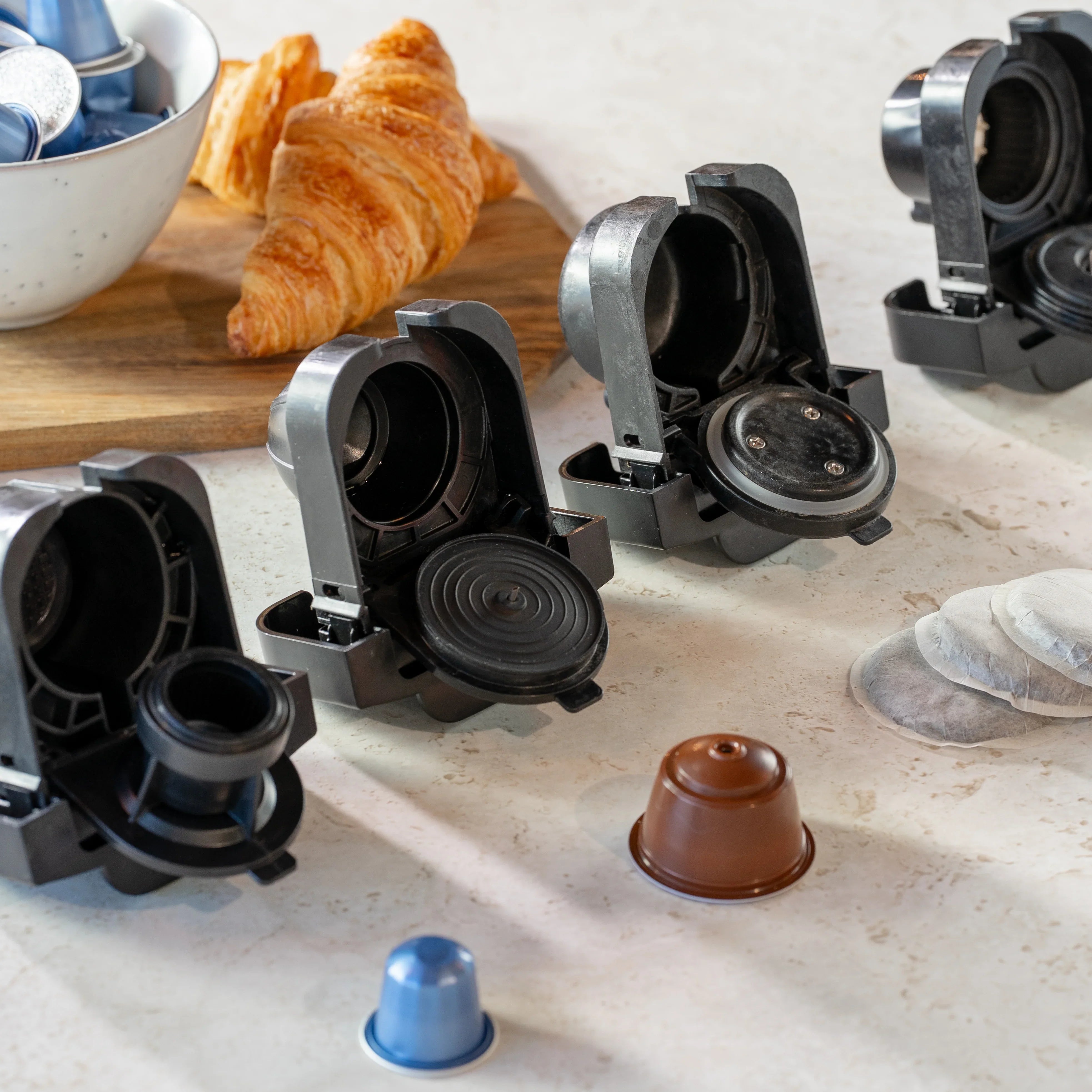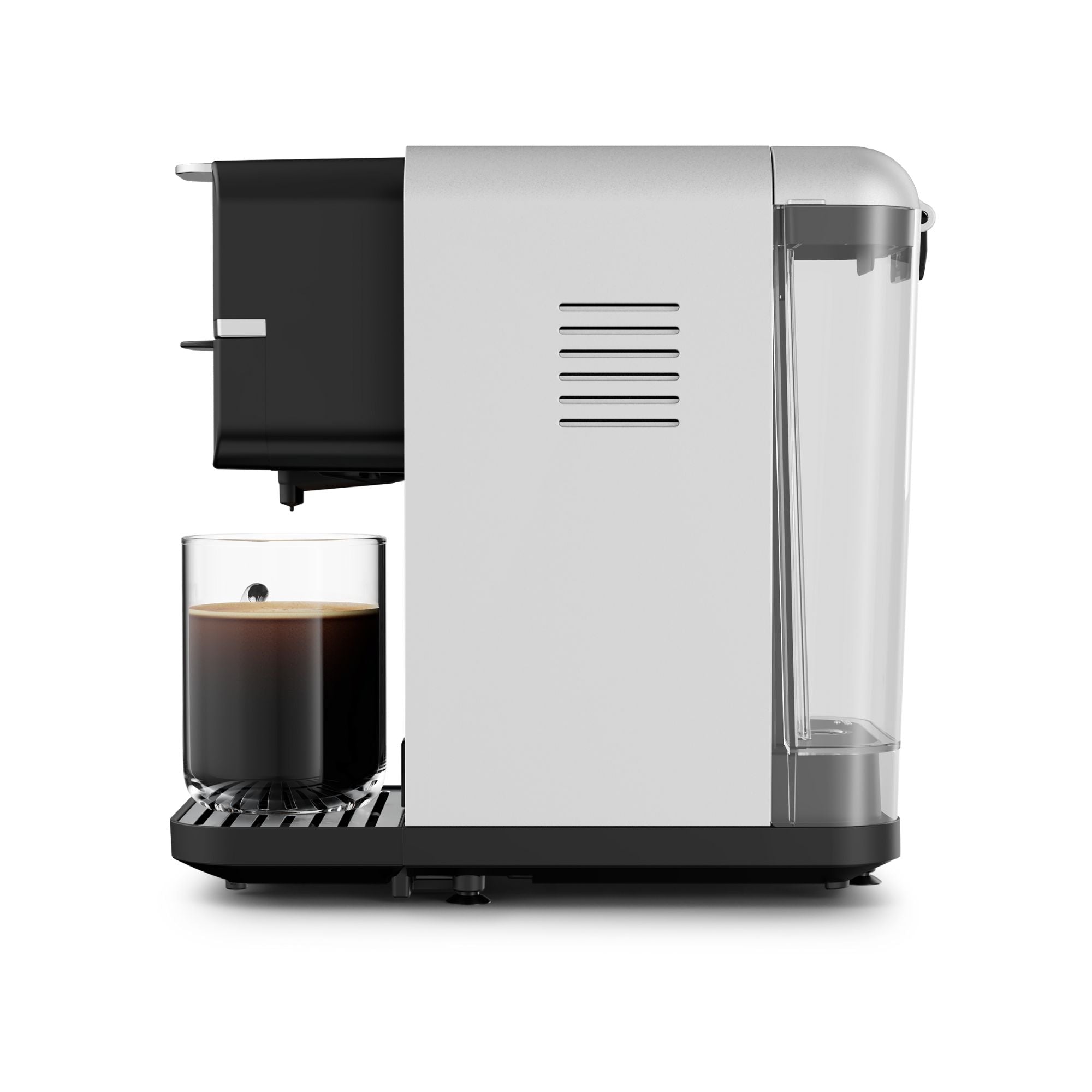 - Kapselkompatibilitet: Nespresso-kapslar (adapter ingår). Ytterligare kompatibilitet med Dolce Gusto, Lavazza Blue, Soft Pods, ESE-pods och malet kaffe via extra adaptrar (säljs separat).