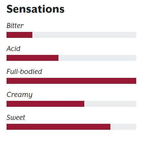 Blank kräm från mörk hasselfärg med rödaktiga streck. Rund och balanserad smak. Smak av kola och rostat bröd. Behagligt fyllig.