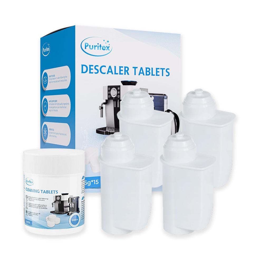 Avkalkningstabletter från Puritex: Puritex avkalkningstabletter är speciellt utvecklade för att ta bort kalkavlagringar som kan samlas i kaffemaskinens inre komponenter. Kalkavlagringar kan minska maskinens prestanda och resultera i längre bryggtider eller sämre smak. Med Puritex avkalkningstabletter kan du effektivt ta bort dessa avlagringar och säkerställa att din maskin fortsätter att fungera som ny.