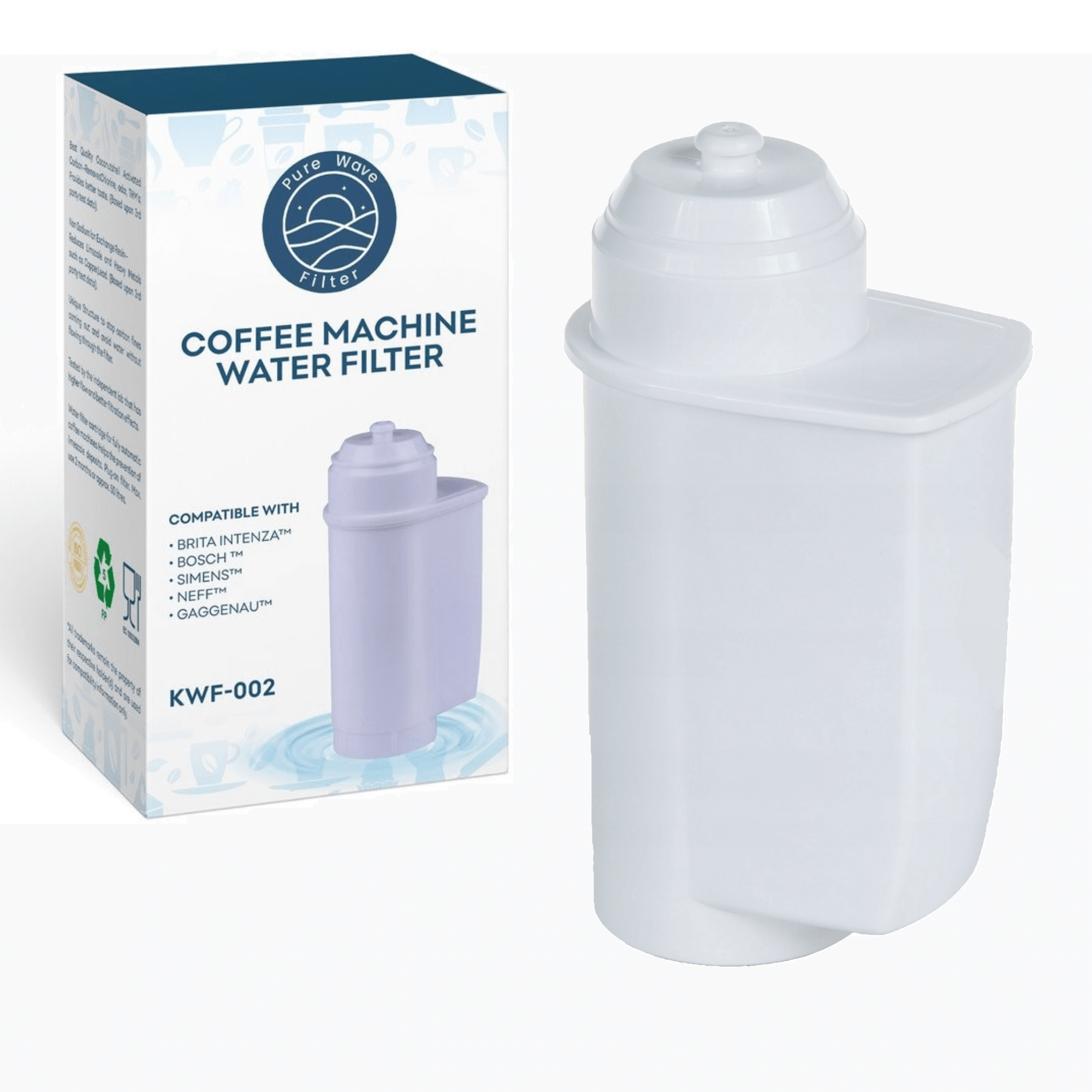 Vattenfilter från Pure Wave: Pure Wave KWF-002 är ett certifierat kompatibelt vattenfilter som passar Siemens kaffe- och espressomaskiner. Detta filter är tillverkat av högkvalitativa material, som är certifierade för livsmedelsanvändning och uppfyller strikta säkerhetsstandarder för att säkerställa att vattnet som passerar genom din kaffemaskin är rent och säkert att dricka. Filtret tar bort kalk, klor och andra föroreningar från vattnet, vilket både förbättrar kaffets smak och skyddar din maskin mot kalkavlagringar som kan påverka dess prestanda och livslängd.